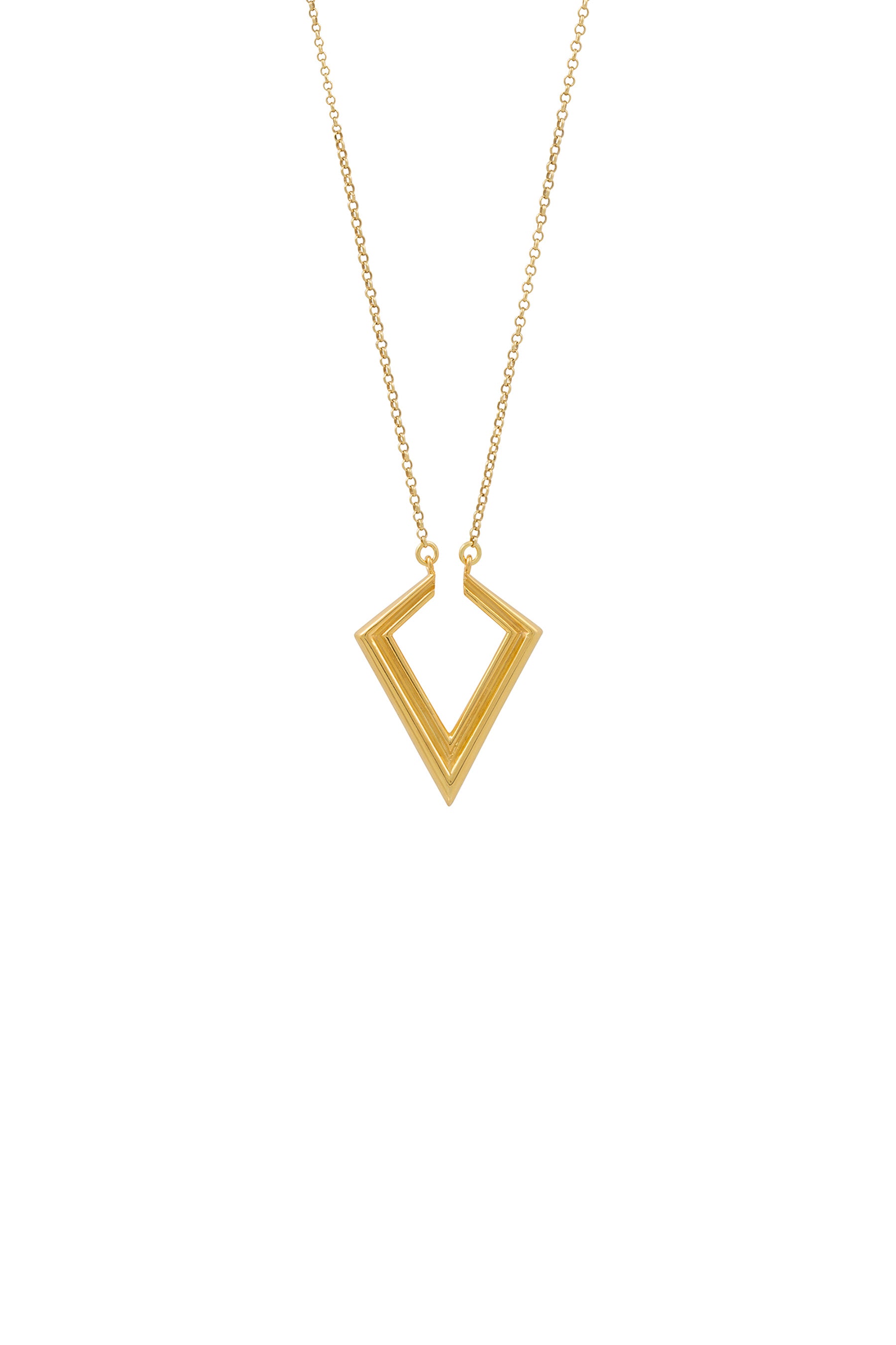 With its bold geometric form, symmetrical design and high shine, this necklace is a nostalgic reference to the glamorous era of Art Deco. Cast from 18-karat gold-plated 925 sterling silver, the Kite necklace is a beautiful way to enrich your signature jewelry pieces list.